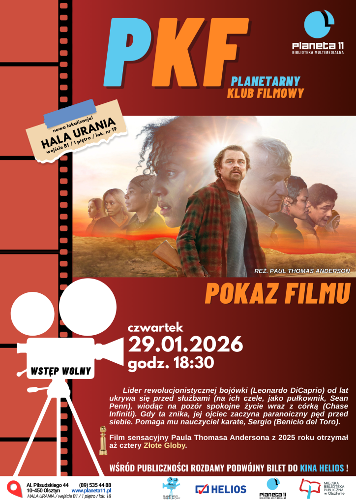 Obejrzymy nagrodzony czterema Złotymi Globami film sensacyjny Paula Thomasa Andersona z 2025 roku. Jego głównym bohaterem jest dawny lider rewolucjonistycznej bojówki (Leonardo DiCaprio), który od lat ukrywa się przed służbami (na ich czele, jako pułkownik, Sean Penn), wiodąc na pozór spokojne życie wraz z córką (Chase Infiniti). Gdy ta znika, jej ojciec zaczyna paranoiczny pęd przed siebie. Pomaga mu nauczyciel karate, Sergio (Benicio del Toro).