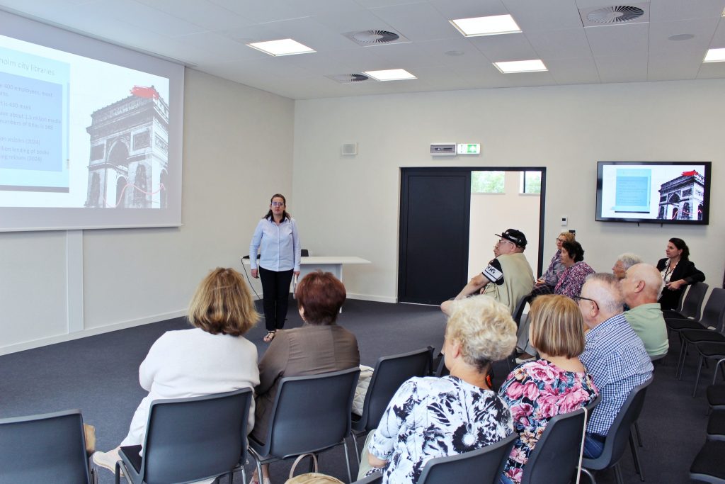 W ciągu kolejnych dni odwiedziliśmy kolejno: bibliotekę akademii medycznej Karolinska Institutet, słynny Kulturhuset (a w nim TioTretton – bibliotekę dedykowaną wyłącznie dzieciom w wieku 10-13 lat, bibliotekę komiksową Serieteket oraz bibliotekę muzyczno-artystyczną Kulturbiblioteket, bibliotekę akademii technicznej Kungliga Tekniska högskolan, Tranströmer Biblioteket (mieszczą się tam oddziały dla dorosłych i dzieci, ale też Biblioteka Punkt dedykowana młodzieży w wieku 14-19 lat), a także prywatną bibliotekę Dieselverstadens bibliotek. Ta ostatnia powstała w dawnej fabryce Diesla. Zobaczyliśmy również Strängnäs i zabytkową bibliotekę katedralną z licznymi starodrukami (także polonikami), oraz Roggebiblioteket, czyli bibliotekę będącą oddziałem Biblioteki Królewskiej (KB).