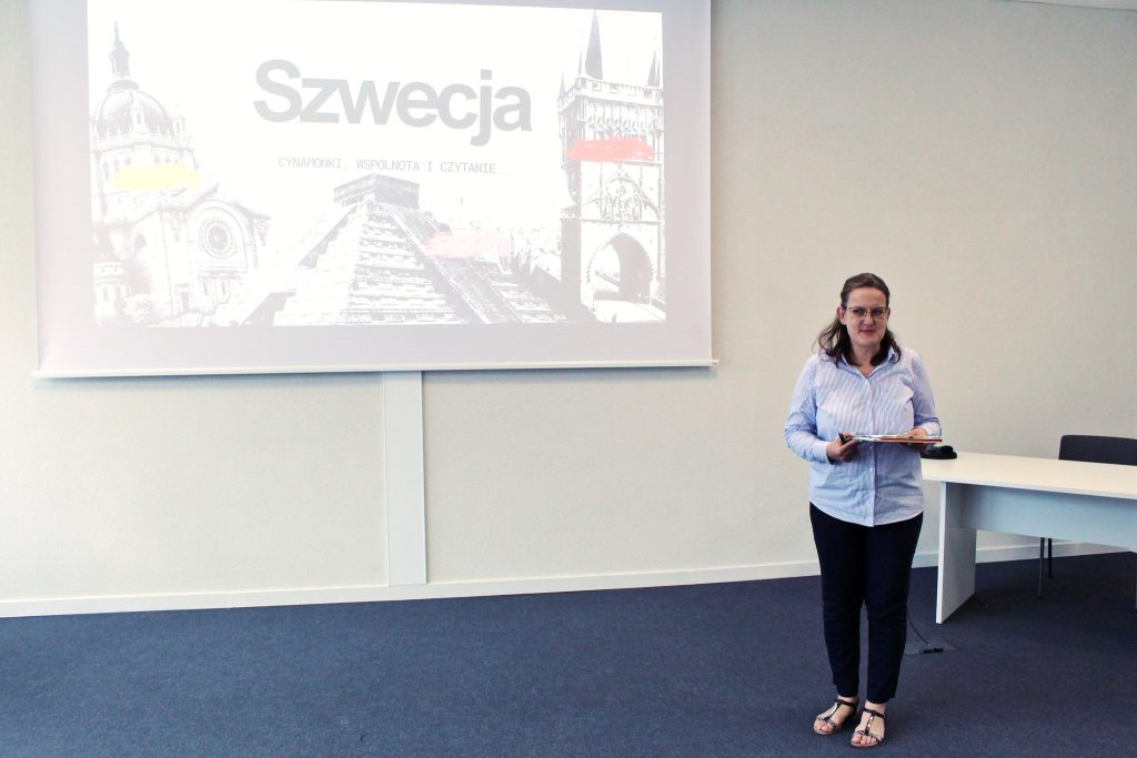 Katarzyna Janków-Mazurkiewicz , na co dzień pracownik promocji Miejskiej Biblioteki Publicznej w Olsztynie, opowiedziała o wyjątkowym wyjeździe do szwedzkich bibliotek. W trakcie wyjazdu, od 7 do 11 kwietnia bibliotekarze z Miejskiej Biblioteki Publicznej w Olsztynie mieli możliwość wziąć udział w projekcie Erasmus+, którego głównym celem jest podniesienie kompetencji oraz obserwacja dobrych praktyk. Szwedzi są świetni w tworzeniu przestrzeni do integracji, robią to od lat. Mogliśmy zobaczyć więc, jak tworzy się społeczność wokół czytania.