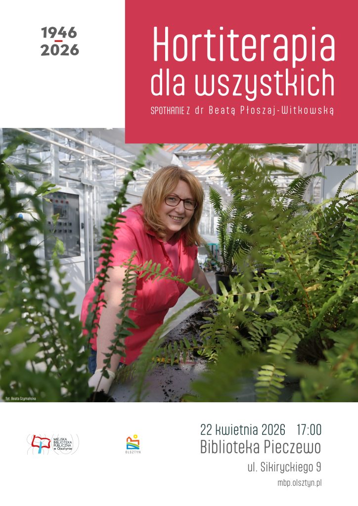 Hortiterapia wciąż jest w Polsce mało znana. W niektórych krajach osobom, które przechodzą na emeryturę, przekazuje się ogrody działkowe. Dzięki temu nie tylko mają kontakt z naturą, ale też dbają o aktywność fizyczną. Podczas spotkania w Bibliotece Pieczewo porozmawiamy o tym, jak ogród i rośliny mogą wspierać nasze zdrowie, samopoczucie i relacje z innymi. Zastanowimy się także, jak zachęcać dzieci, dorosłych i seniorów do aktywności ogrodniczej oraz jak czerpać z niej radość bez nadmiernego wysiłku. To propozycja dla wszystkich – zarówno dla osób z doświadczeniem ogrodniczym, jak i tych, którzy dopiero chcą rozpocząć swoją przygodę z roślinami. Serdecznie zapraszamy!