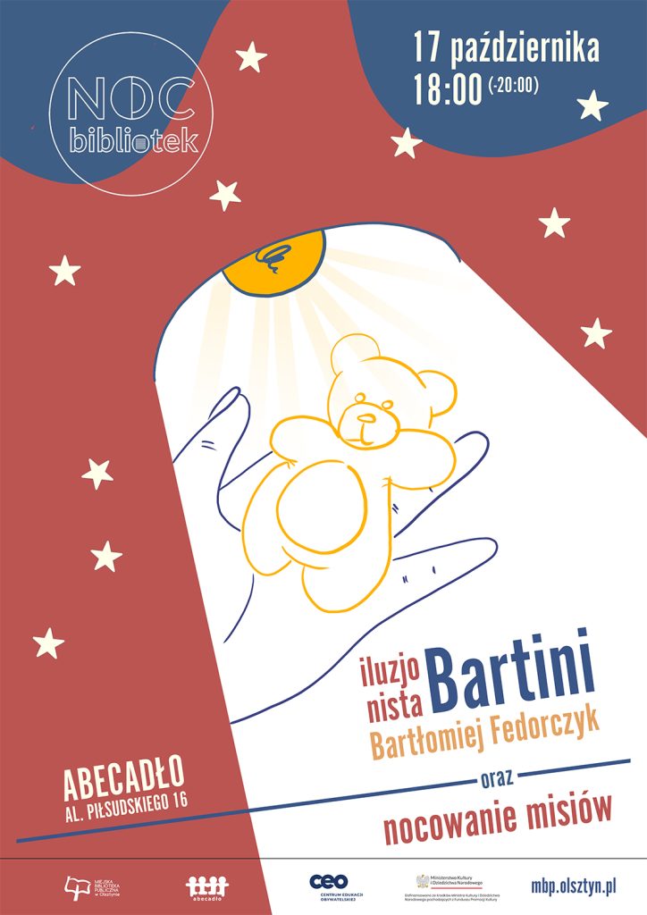 To będzie NOC BIBLIOTEK pełna atrakcji. Już 17 października od godziny 18.00 do 20.00 w Bibliotece Abecadło. Zabierzcie ze sobą ulubione pluszaki, które będą miały okazję nocować w bibliotece. Na najmłodszych czekają sztuczki z prawdziwym iluzjonistą – i biblioteczne ASMR oraz zabawy plastyczne. To już 11. wydanie ogólnopolskiej Nocy Bibliotek, które w tym roku odbywa się pod hasłem „Do dzieła!”.