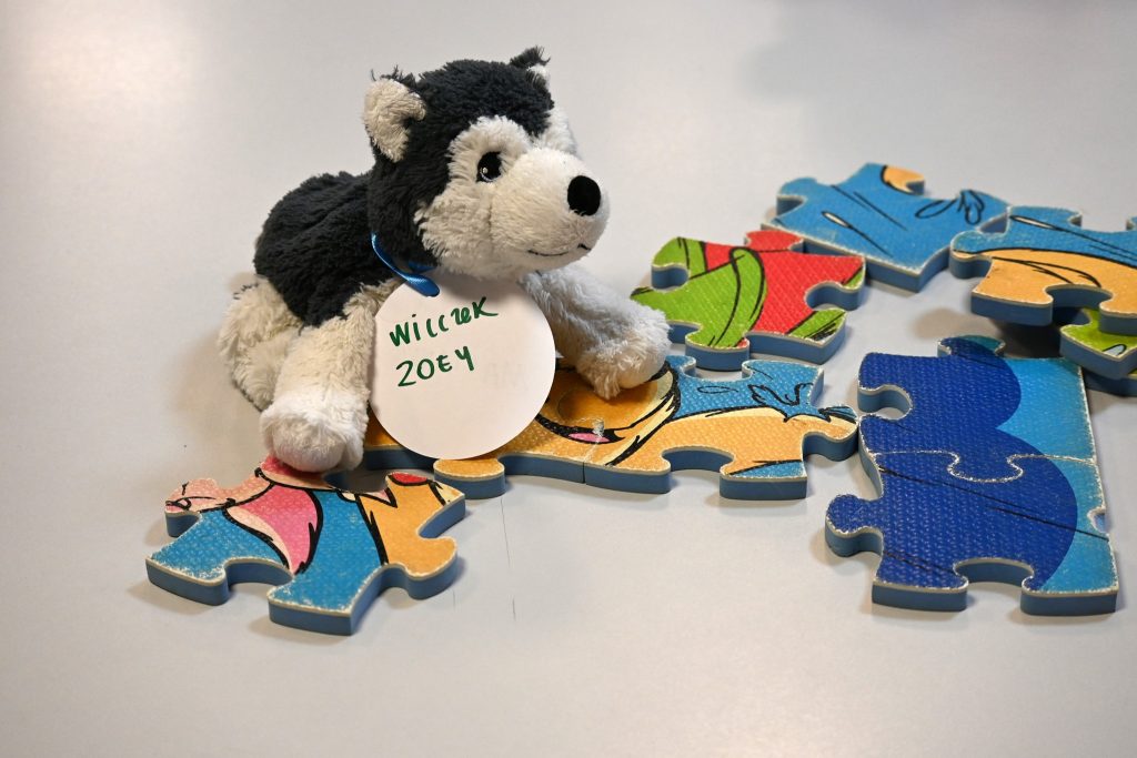 Wilczek Zoey cierpliwie układał puzzle – i szło mu naprawdę dobrze! Słodziaczek Misiaczek i Piesek zabrali się za kolorowanki. Wszyscy szukali zagubionych kredek, ale w końcu każdy odnalazł swoje ulubione kolory.