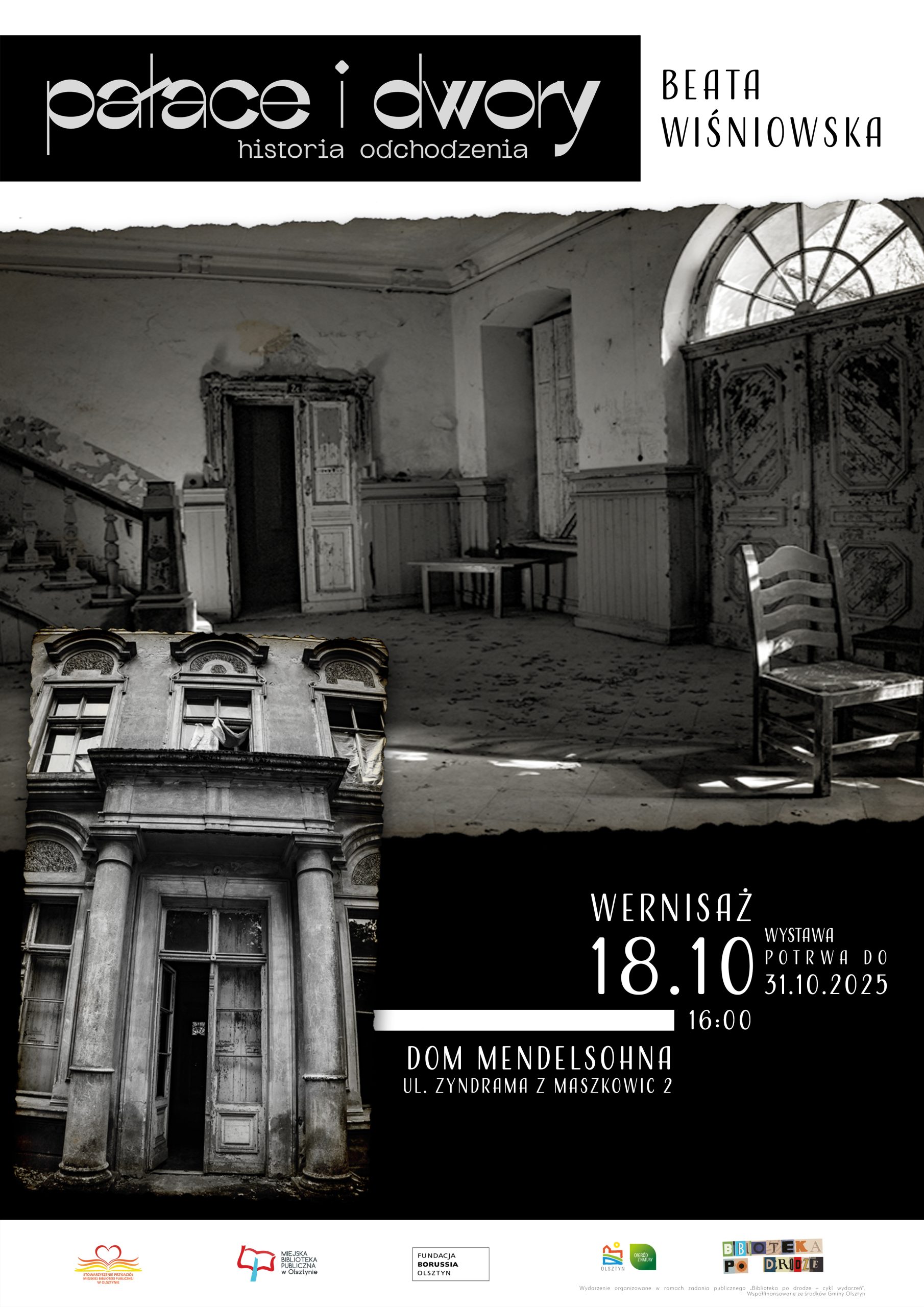 To zdjęcia, które dokumentują świat, którego już nie ma. Zapraszamy na wystawę fotografii „Pałace i dwory. Historia odchodzenia” Beaty Wiśniowskiej. Wernisaż odbędzie się w sobotę, 18 października o godzinie 16.00 w siedzibie Fundacji Borussia przy ulicy Zyndrama z Maszkowic 2.