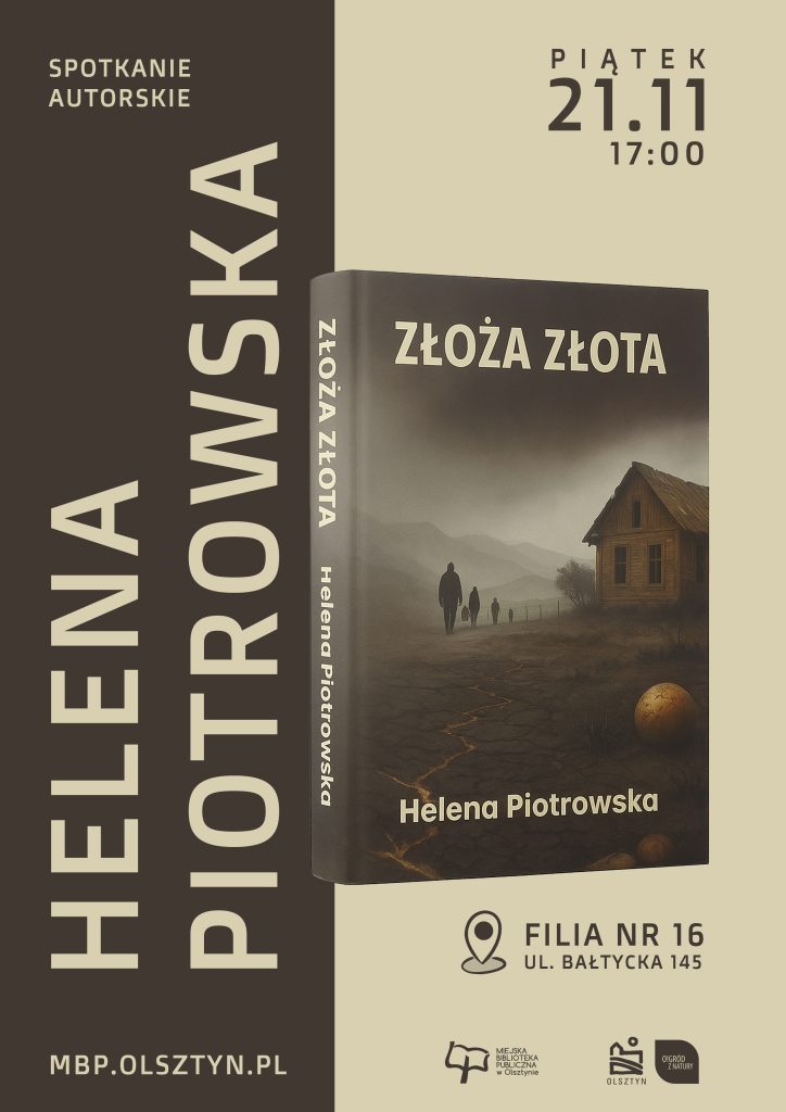 Autorka biografii związana z Warmią i Mazurami bywa nazywana „kronikarką regionu”. W swoich książkach skupia się przede wszystkim na człowieku i jego emocjach. Spotkanie z Heleną Piotrowską m.in. wokół m.in. publikacji „Złoża złota” już w piątek, 21 listopada o godzinie 17.00 w filii nr 16 przy ulicy Bałtyckiej 145.