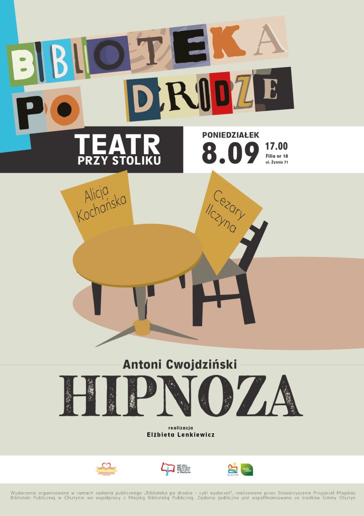 Po letniej przerwie zapraszamy na wyjątkowe spotkania z cyklu Teatr przy Stoliku. Już w poniedziałek, 8 września o godz. 17:00 w filii nr 18 przy ul. Żytniej 71 odbędzie się prezentacja sztuki „Hipnoza” Antoniego Cwojdzińskiego w wykonaniu aktorów Teatru im. Stefana Jaracza – Alicji Kochańskiej i Cezarego Ilczyny.